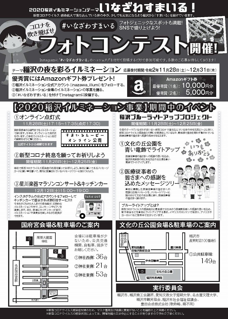 - 2020年11月28日~12月25日:国府宮駅~国府宮参道、文化の丘公園を会場として、「2020稲沢イルミネーション」(第5回)を開催。