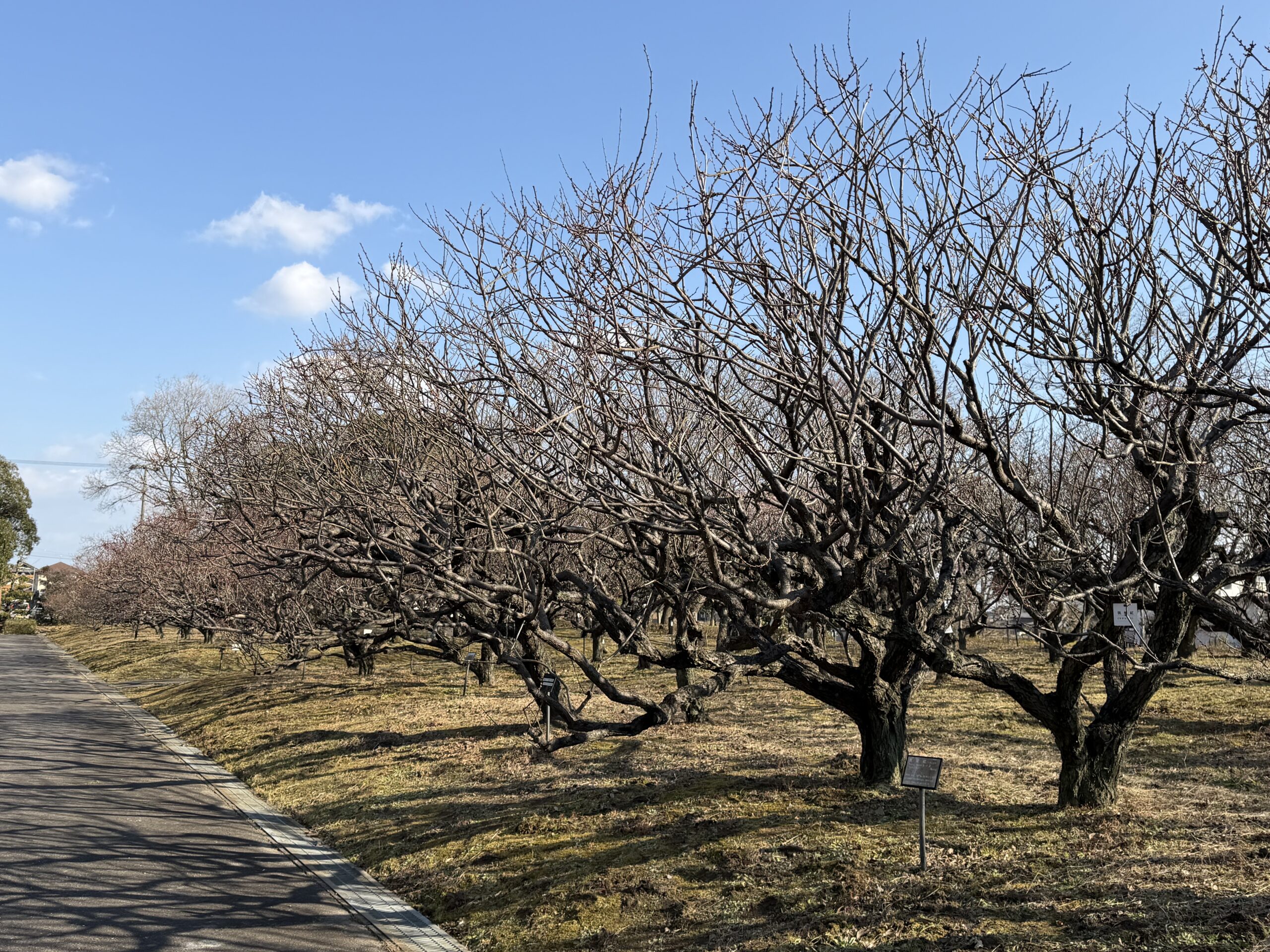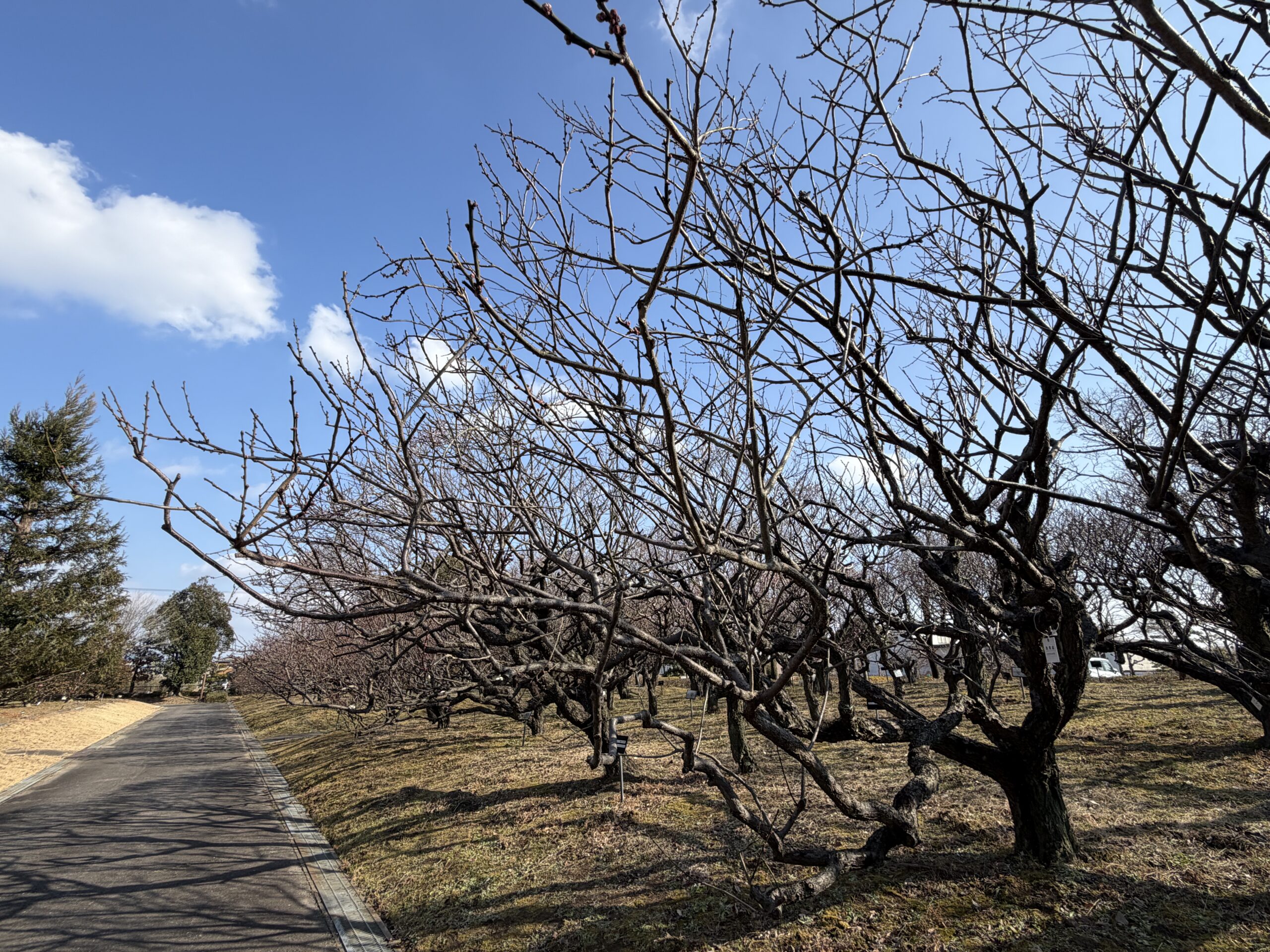 【梅開花状況2月13日現在】まだまだつぼみの品種が多いですが、ちらほらと咲き始めています。