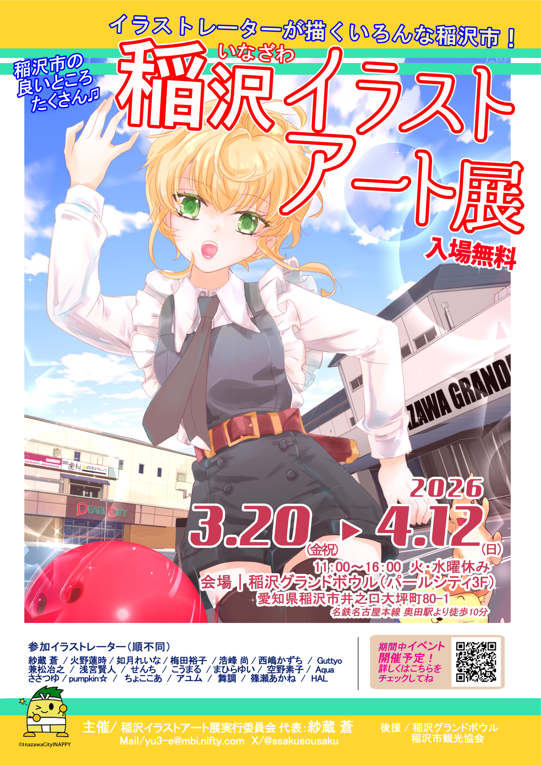 令和8年3月20(金・祝)から4月12日(日)に稲沢グランドボウル(パールシティ3F)で「稲沢イラストアート展」が開催されます。